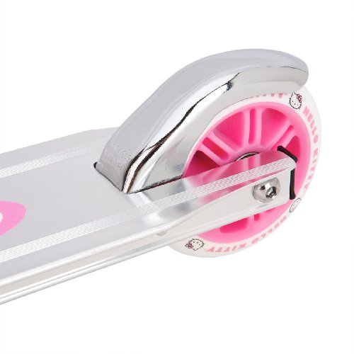 - Co-branded Hello Kitty-themed kick scooter- Aircraft-grade aluminum frame holds up to heavy use